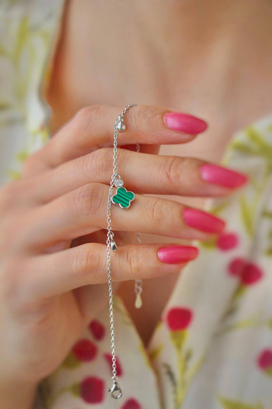 دستبند نقره ونکلیف با سنگ‌مالاکیت